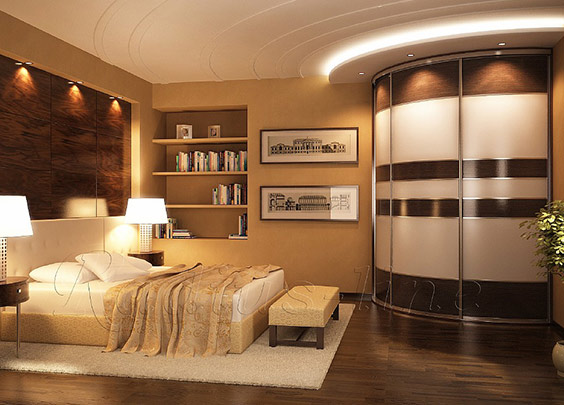 В распахнутом виде такой тип шкафа требует довольно много пространства, поэтому для слишком маленькой спальни может не подойти.