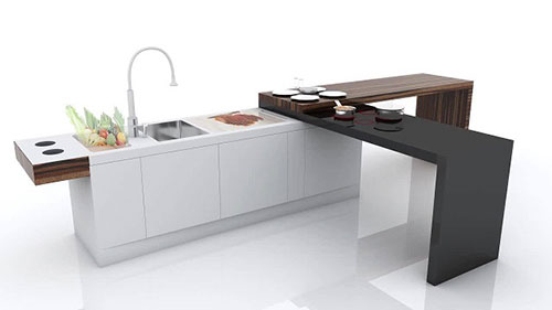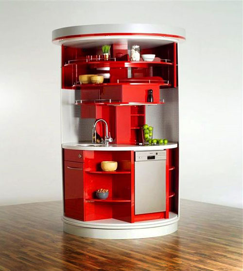 Чудеса случаются, нужно просто посмотреть под другим углом на ситуацию. Именно так и поступили немецкие волшебники-дизайнеры, которые создали уникальное инновационное решение – вращающаяся на 180 градусов кухня. Здесь есть всё, что необходимо на кухне. Каждая полочка поворачивается в любом направлении, встроена духовка, микроволновая плита, мойка и ещё много-много всего. Кроме того, после использования такую кухню можно закрыть, и она будет похожа на своего рода шкаф, который можно поставить в любой комнате.