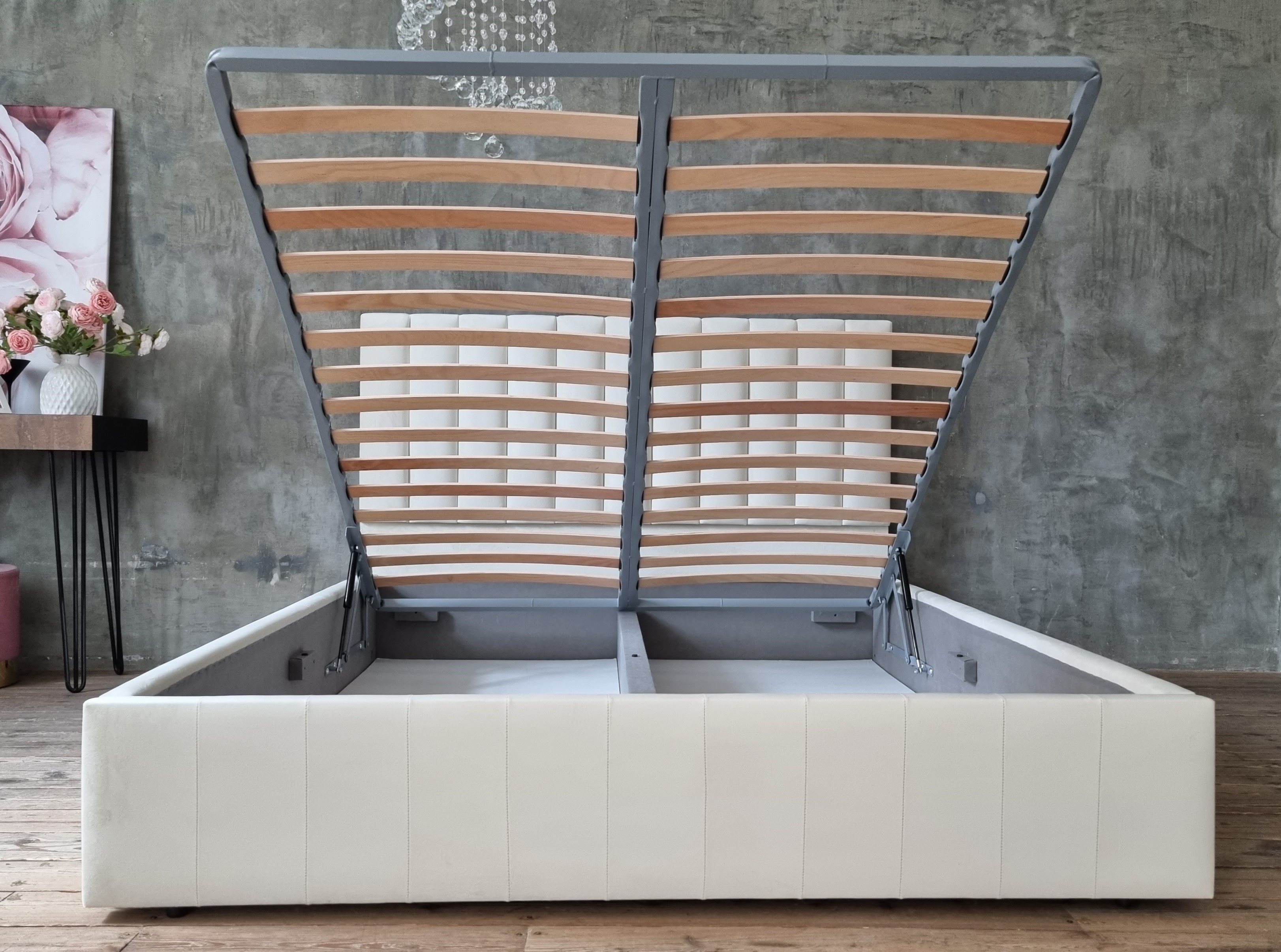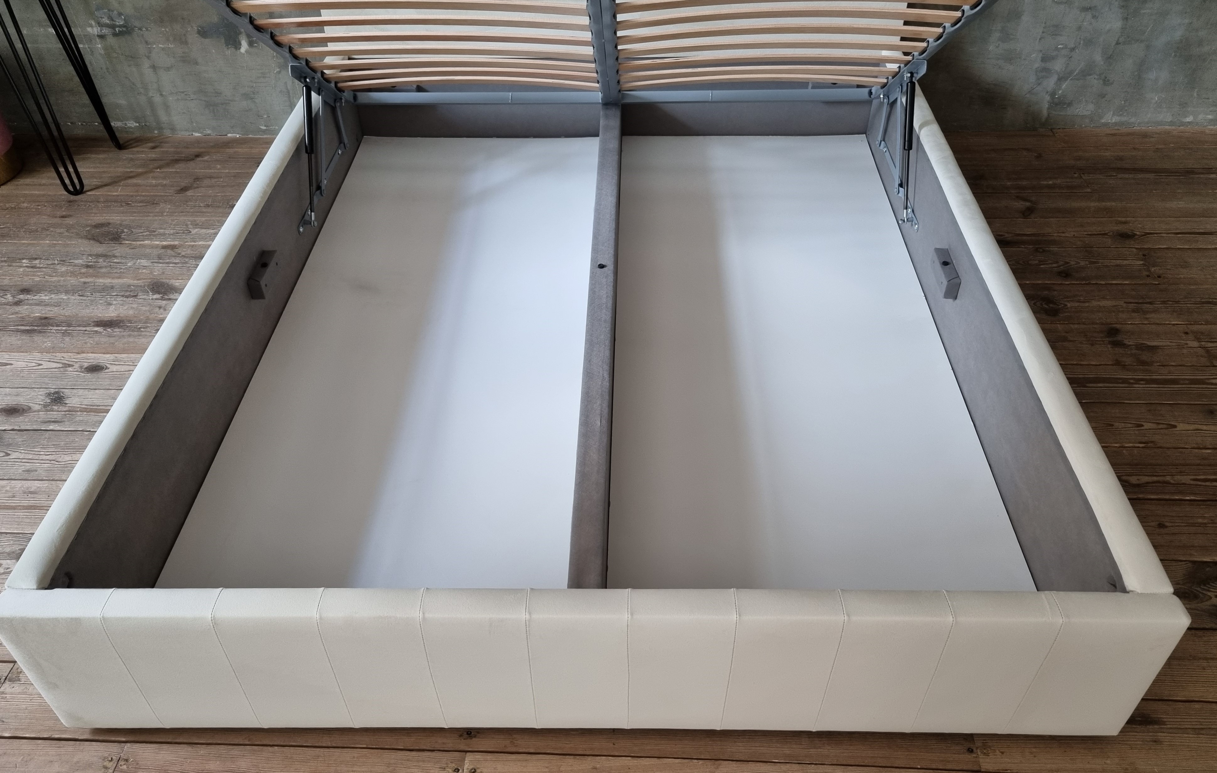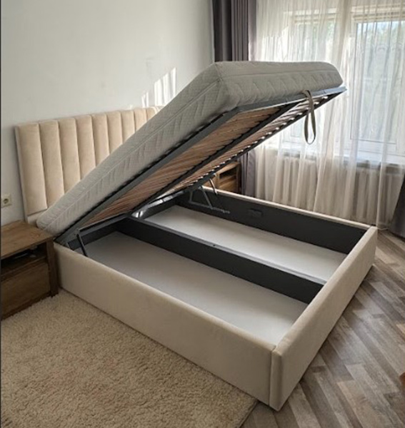 при выборе комплектации с подъемным механизмом, у кровати будет очень глубокий короб для хранения белья, что очень удобно, так как фактически у Вас под кроватью будет целый шкаф;