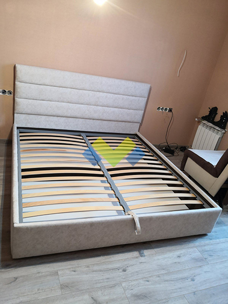 Хорошая кровать! Действительно качественная. За месяц пользования я не нашел никаких минусов. Я решил не экономить на ткани, поэтому заказал велюр в бежевом цвете. Также взял подъемный механизм. Ткань хорошо покрывает кровать, прочно прикреплена. Ламели не тонкие, расстояние между ними как раз хорошее.